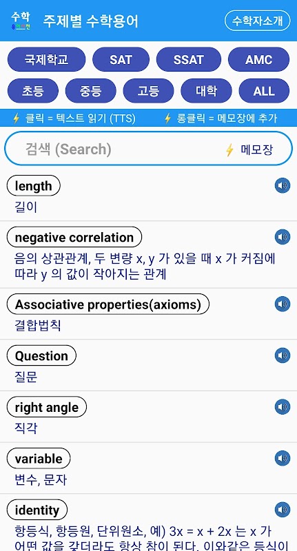 ■ Se requiere una aplicación de expresión en inglés de terminología matemática para aquellos que aprenden o se preparan para términos matemáticos (expresión en inglés).