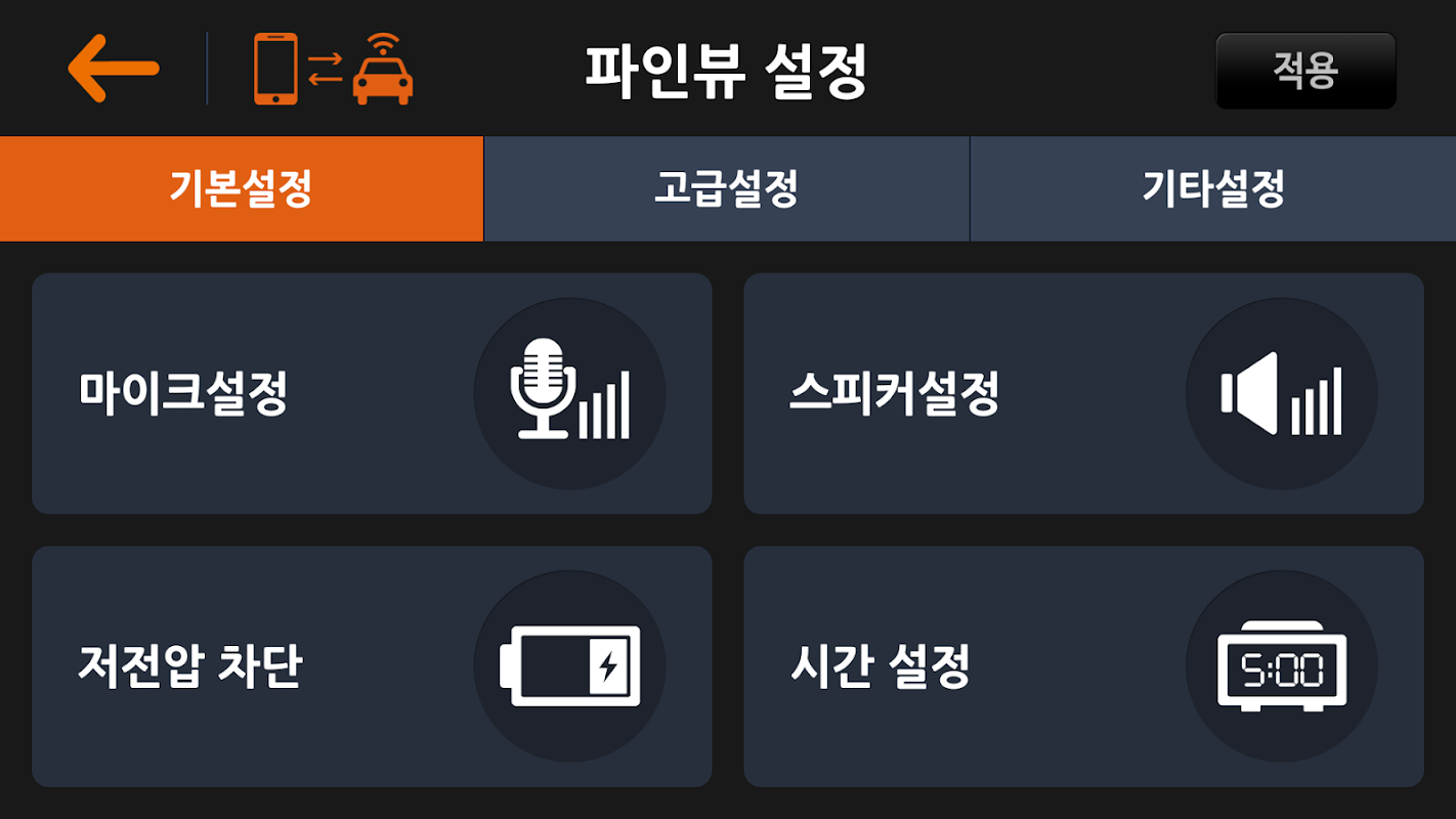 파인뷰 설정 : 민감도, 스피커, 전압 차단, 시간설정, 메모리 할당 설정 등을 할 수 있습니다.