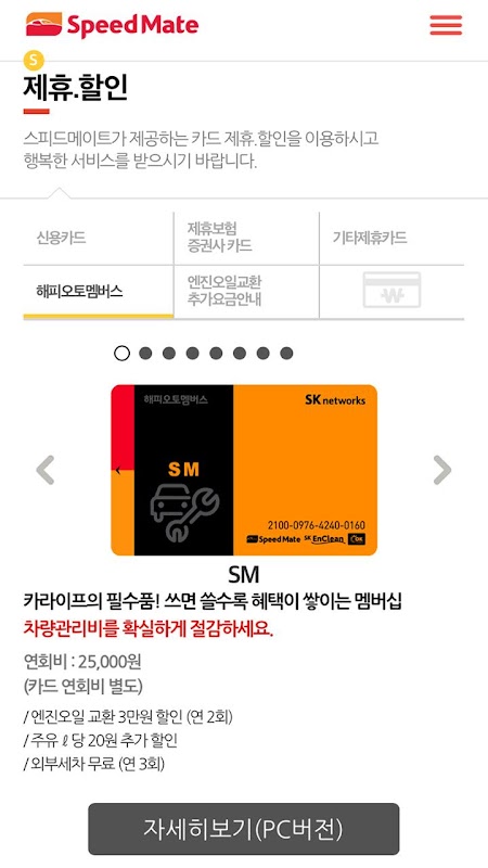 SK대표 자동차 종합 서비스 스피드메이트 모바일 웹사이트입니다. 타이어교환, 수입차정비, 예약하기, 매장찾기, 차량관리, 이벤트프로모션 등 이 모든 기능을 스피드메이트 모바일 웹사이트에서 편리하게 이용하시기 바랍니다