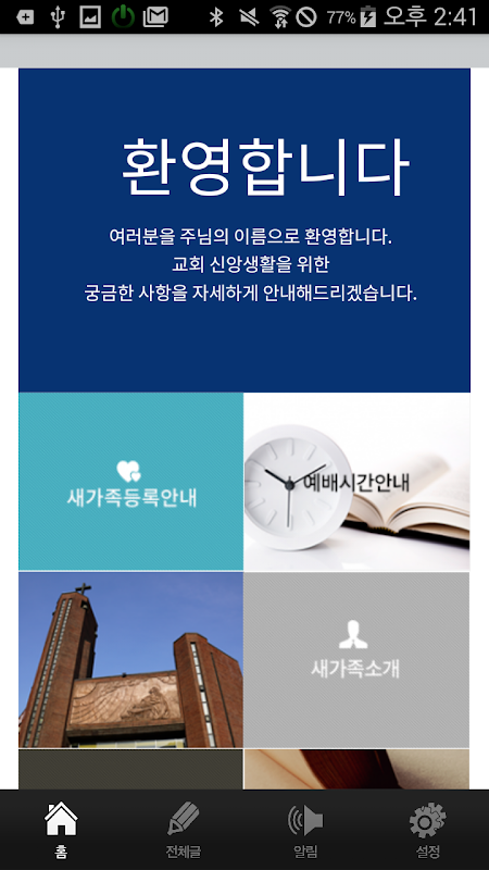 * 100% 연동형 앱 : 홈페이지에 등록된 내용, 게시물, 설교영상, 사진 등의 콘텐츠를 앱과 100% 연동하여 실시간으로 앱을 통해 확인할 수 있습니다.