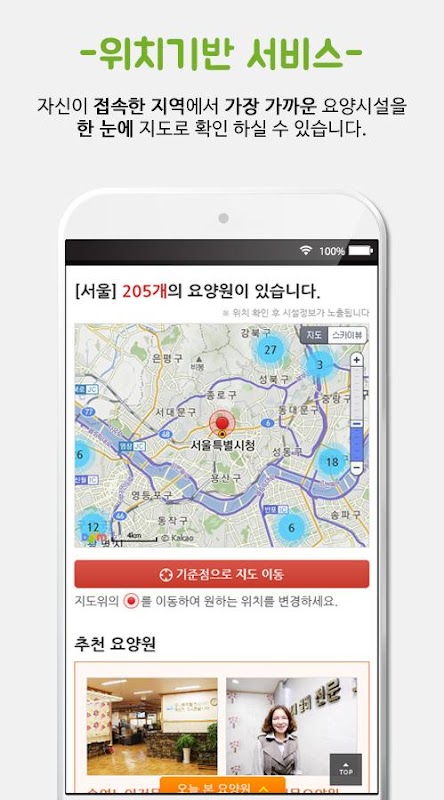 자신이 접속한 지역에서 가장 가까운 요양시설을 한 눈에 지도로 확인!!