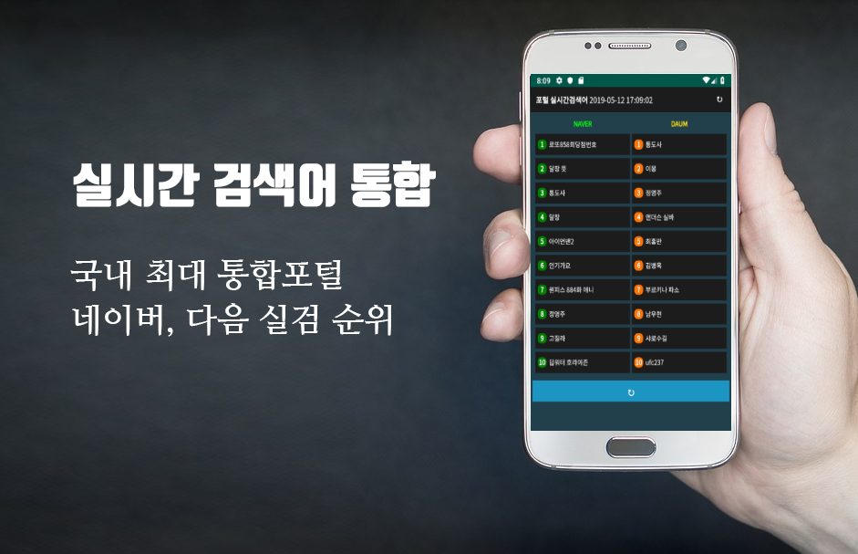 No es necesario que realice ninguna acción y simplemente elimine todo, y muestra la clasificación de los próximos términos de búsqueda en tiempo real con Naver, el sitio de portal más grande de Corea.