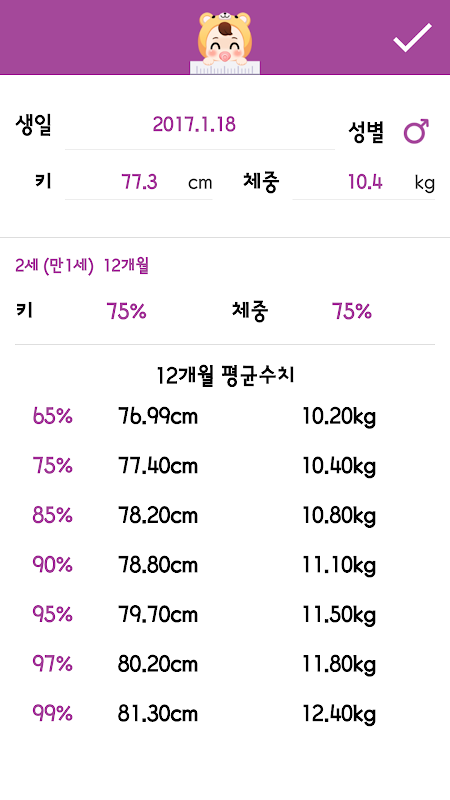해당 앱은 2018년 1월 발표된 질병관리본부 소아성장도표를 기준으로 하였습니다.