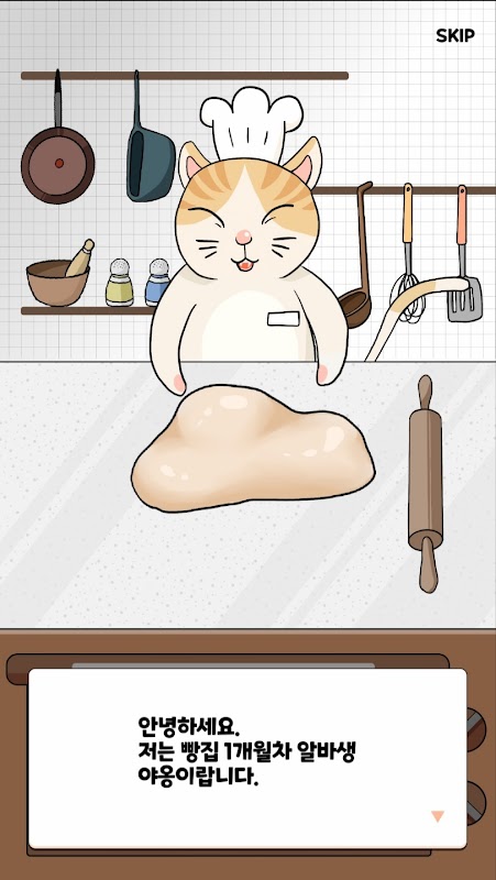 Esta es la historia de un maullido que trabaja duro para hacer pan en una panadería para convertirse en un empleado de tiempo completo. ¡Ayuda a Meow a convertirse en un empleado de tiempo completo!
