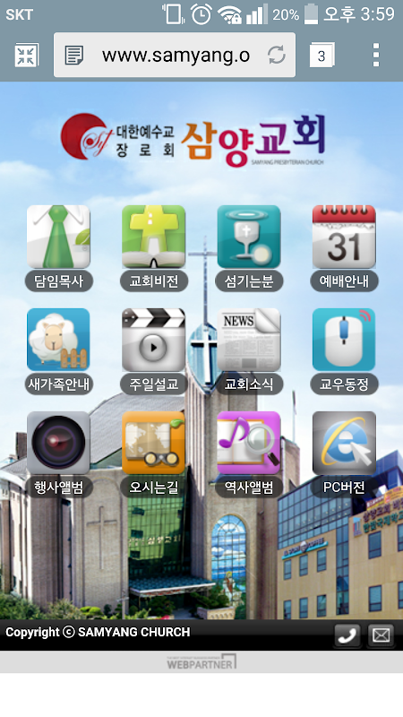 또한 교회 홈페이지 게시판에 올라온 최신 소식 등을 스마트폰에서 빠르게 확인하실 수 있습니다.