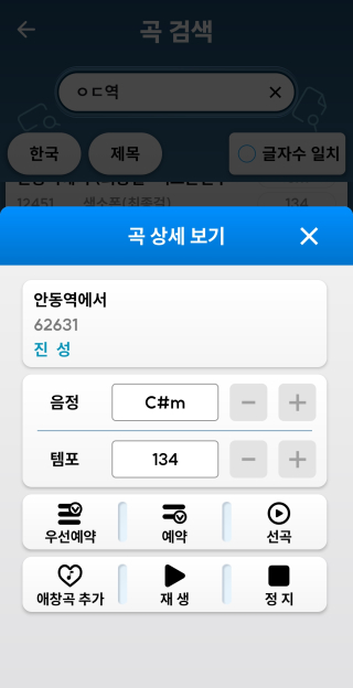 • 곡 상세정보 창에 남성/여성 키 전환 버튼과 원음정 버튼을 추가했습니다.