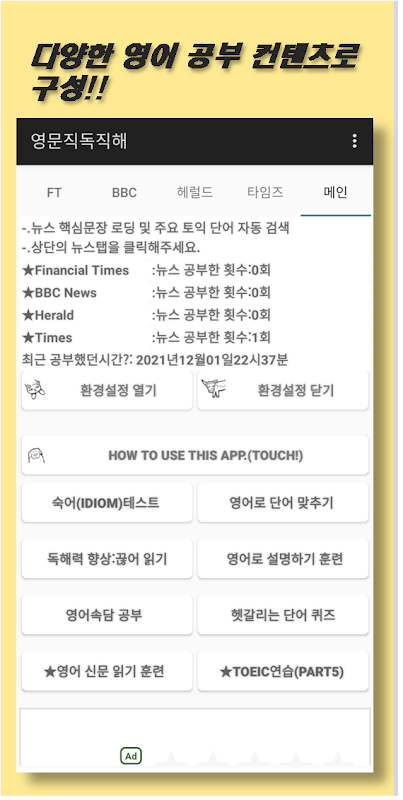 Versiones Antiguas de 영어 독해 트레이닝 (영어 신문 받아쓰기)