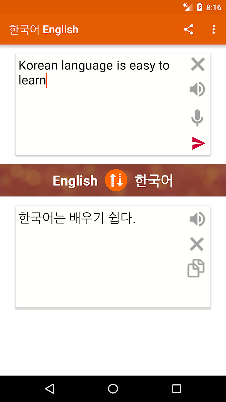 This translator app is designed for Translating Korean to English and English to Korean Languages and you can also find the dictionary words phrases, sentences or vocabulary ordinary users. language translator is a powerful translation tool on Android devices.