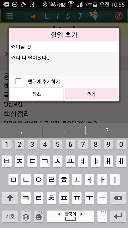 오늘할일(Todo list, 할일 목록) 1.3