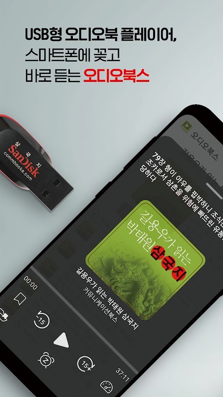 PC나 스마트폰에서 바로 연결되는 USB형 오디오북 전용 플레이어입니다. 복잡한 로그인도, 월정액 부담감도 없이 내가 원하는 책을 구매해서 원하는 디바이스에서 편하게 들어보세요.