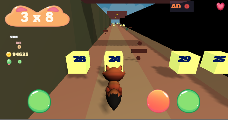 캐릭터와 함께 장애물을 피하면서 구구단 문제가