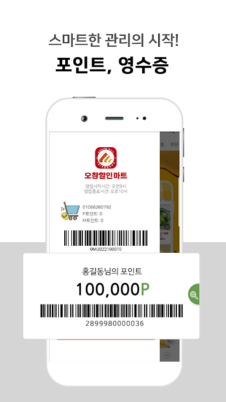 - 오창할인마트의 포인트 카드를 모바일로 편리하게 이용하시고, 언제 어디서든 포인트를 확인하실 수 있습니다.