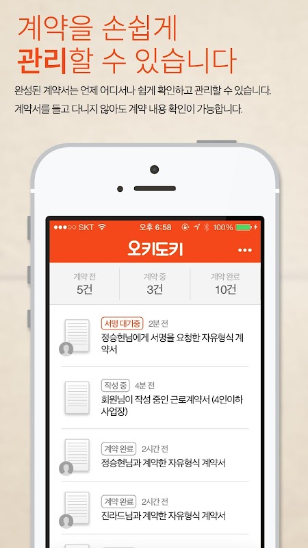 완성된 계약은 오키도키 앱에서 관리할 수 있습니다.