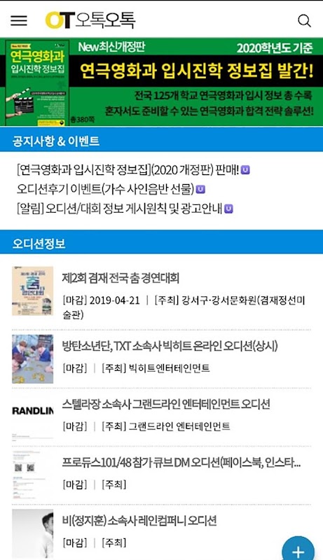 오톡오톡 : 오디션정보 - 배우, 가수, 뮤지컬 오디션