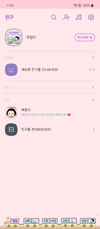 구글의 OS 정책에 따라 앱 실행 시 기존에 노출되었던 옥철이 메인화면은