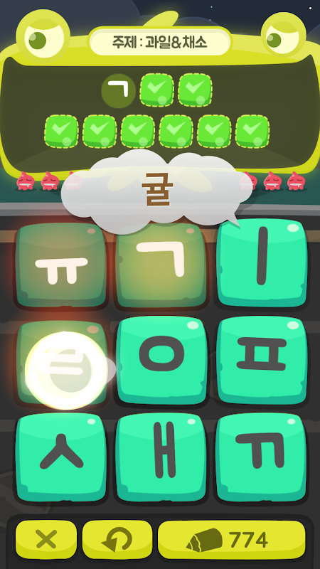 - 힌트 버튼을 이용하면 찾을 수 없는 단어를 찾는게 매우 큰 도움이 됩니다!