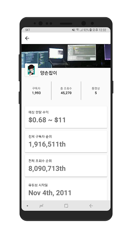 3. 실시간 구독자,총 조회수,영상 갯수 확인