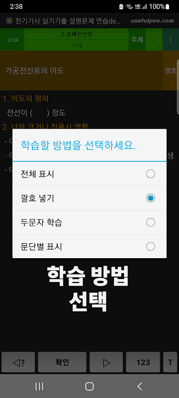 Entre las preguntas anteriores del examen práctico de electricista, se incluyen preguntas de explicación que requieren memorización, y varios métodos de aprendizaje, como poner paréntesis y funciones de vapor y TTS, aumentan el efecto de aprendizaje.