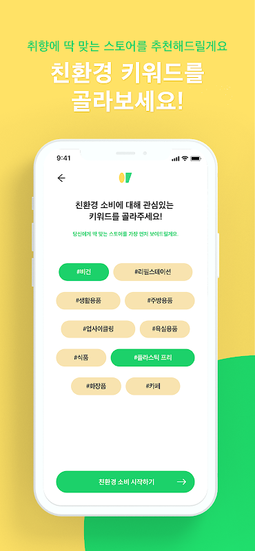 친환경 키워드를 골라보세요! 취향에 딱 맞는 스토어를 추천해드릴게요.