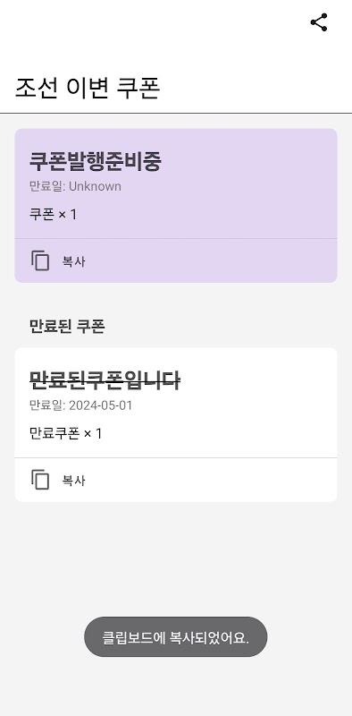 복사 버튼으로 쿠폰 코드 복사도 쉽게!📋✔️