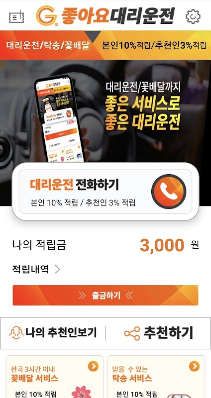 Le gusta el evento del conductor 1. 3.000 wones como felicitaciones de registro 2. Reembolso del 10% sobre la cantidad de uso 3. Acumulación adicional del 3% al usar un referente
