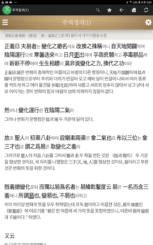 - 전통문화연구회 보급하고 있는 동양고전 13경 주소 앱 시리즈 중 하나인 주역정의(1권) 입니다.
