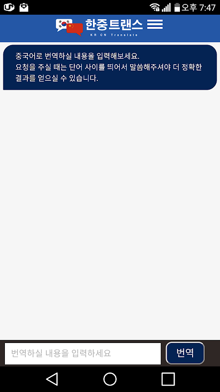 중국어 번역기 - 한중트랜스 (채팅형) 1.0