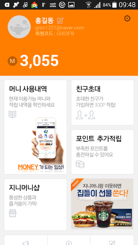 돈버는 어플 지니머니는 기본적으로 600 캐시 머니가 적립됩니다.