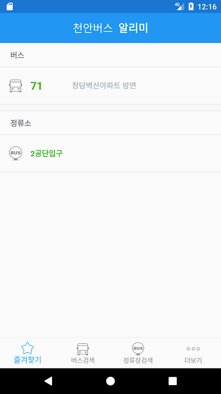 Nueva Guía de Cheonan autobús aplicación de interfaz de usuario limpia.