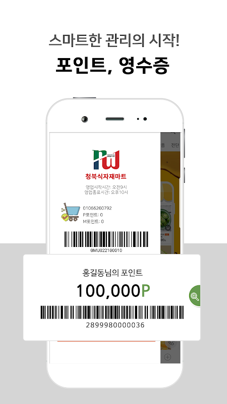 -Puede usar cómodamente la tarjeta de puntos de Cheongbuk Foods Mart a través del móvil y verificar los puntos en cualquier momento y en cualquier lugar.