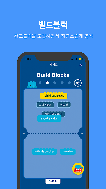 ¡Bloquea el aprendizaje de inglés en bloques que te permite escuchar, hablar y comprender repetidamente el significado de oraciones a través de contenidos llenos de varias expresiones!