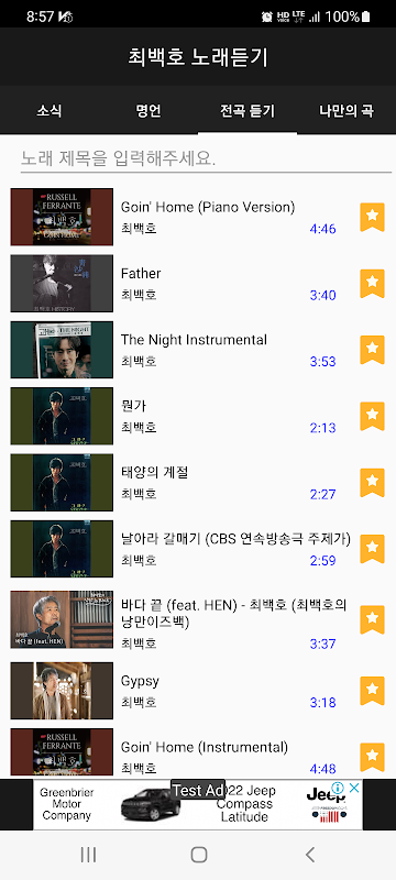 Aplicación de colección de canciones de trote Choi Baek-ho. Busca la canción que quieras y crea tu propia lista de canciones y disfrútala.