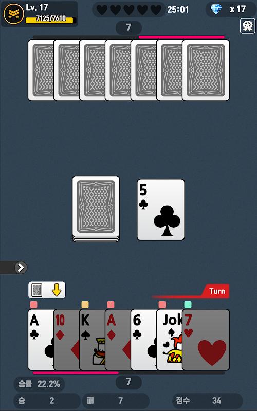 -7 Cartas ♠ ◆ ♥ ♣ Cambio de patrón Para las cartas JQK, puede jugar una carta más.