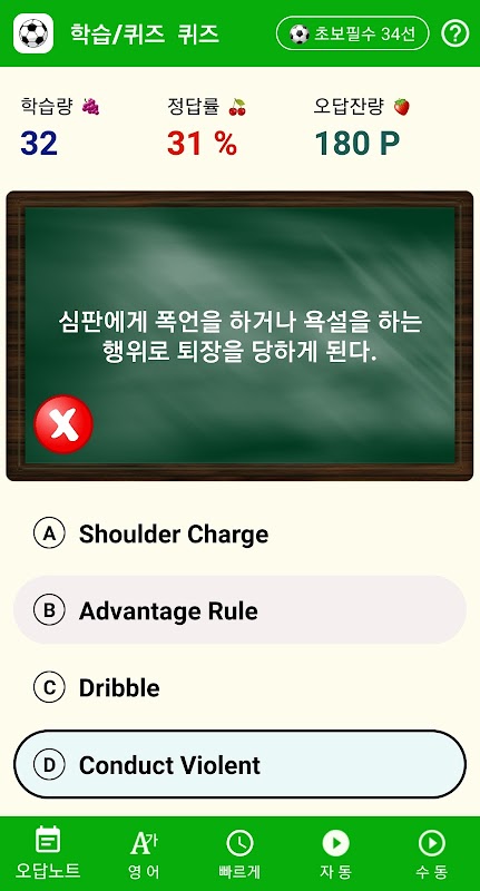 ■ 퀴즈모드에서 오답을 선택할 때 오답노트로 자동 저장됩니다.