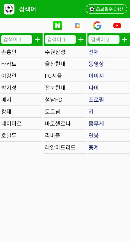 ■ 축구관련 검색어 등록 기능으로 빠른 검색 기능과 축구 이미지도 볼 수 있습니다.