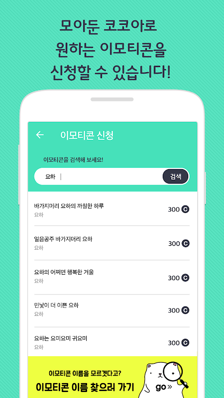 2. 일정 코코아가 적립되면 이모티콘을 신청할 수 있습니다!