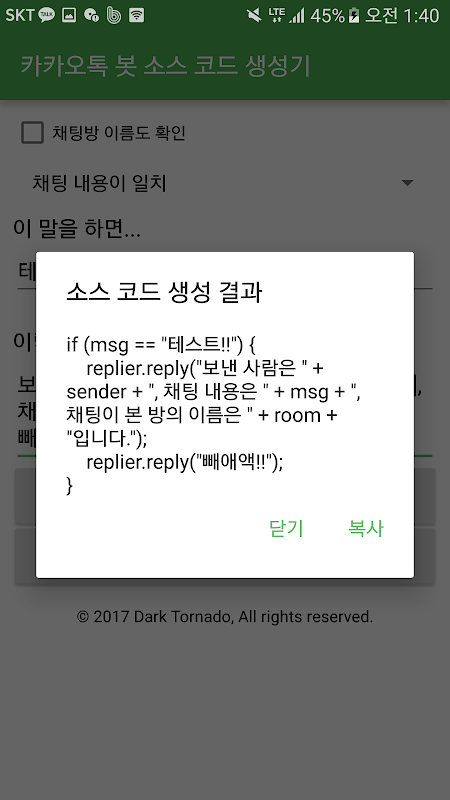Acerca del 카카오톡 봇 소스 코드 생성기