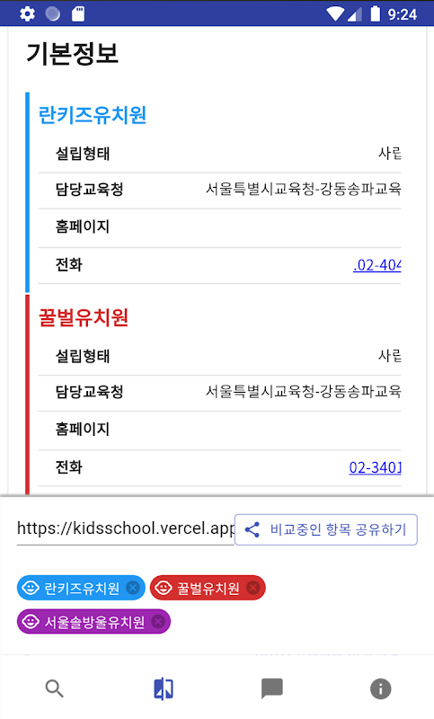 원하는 위치의 유치원/어린이집 검색, 찾기, 비교, 정보를 손쉽게 찾아볼 수 있습니다