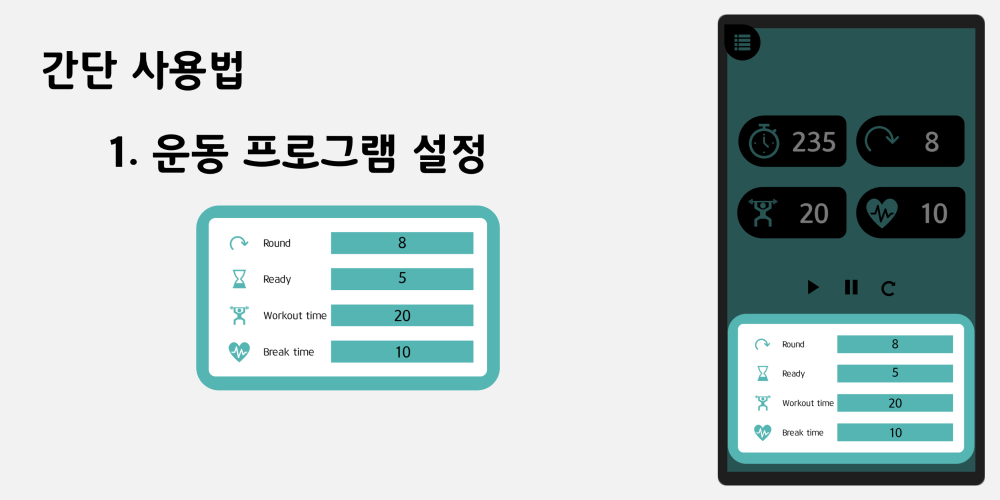 타바타와 같은 인터벌트레이닝을 위한 타이머 어플리케이션입니다.