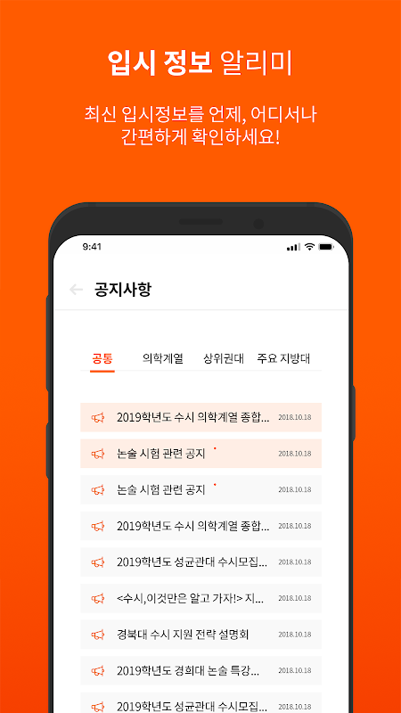 수능 점수만 입력하면 지원 가능한 의학계열, 주요 대학의 학과가 자동으로 정리되어 한 눈에 보입니다.