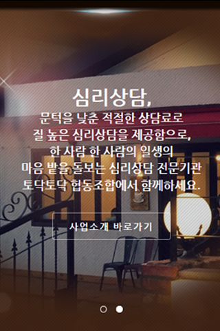 토닥토닥협동조합은 카페라는 문턱을 낮춘 공간에서 석박사 출신의 전문 상담사들이 사람들의 마음 밭을 돌보는 심리상담 전문 기관입니다.