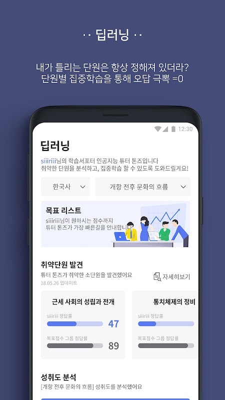 - 내가 틀리는 단원은 항상 정해져 있지 않아요~? 단원별로 어디가 부족한지 인공지능 튜터가 골라주고 반복 학습을 통해 오답률을 낮추는 학습으로 이제 함께 가 보아요!