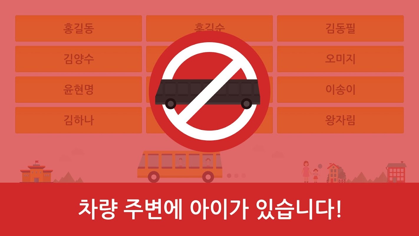 또한, 통학차량 근처에 아직 탑승하지 않은 자녀(단말기를 소지했을 경우)가 있거나, 통학차량의 문이 열려있을 경우, 자녀들의 안전한 등·하원을 위해 출발 금지 경고를 띄워 기사님께 알려줍니다.