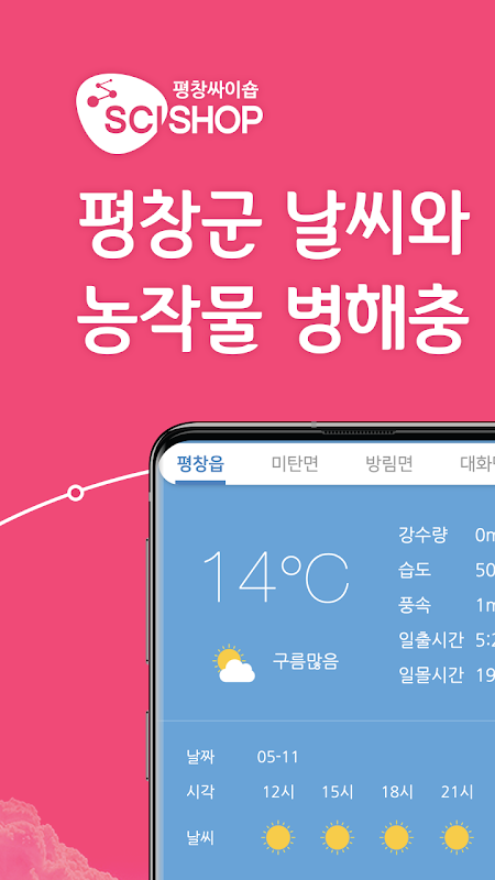 'El tiempo en Pyeongchang-gun y Plagas y plagas en Pyeongchang-gun' se creó con el propósito de proporcionar información semanal sobre la ocurrencia de los principales cultivos y plagas utilizando información meteorológica detallada en cada ciudad y aldea de Pyeongchang-gun.