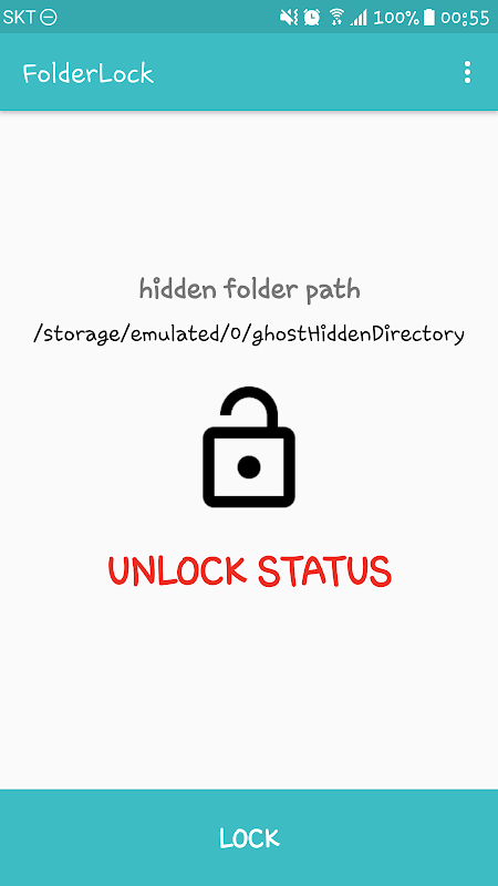 El proceso es simple. Ejecutar la aplicación y la carpeta de bloqueo, bloqueo de carpeta, sólo tiene que pulsar el botón.