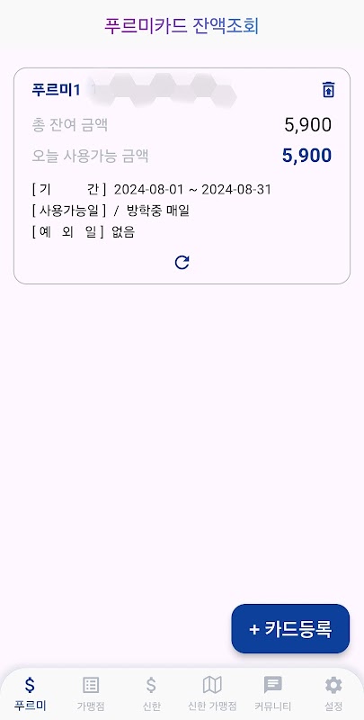 푸르미카드 / 신한기프트 잔액조회 1.2.15