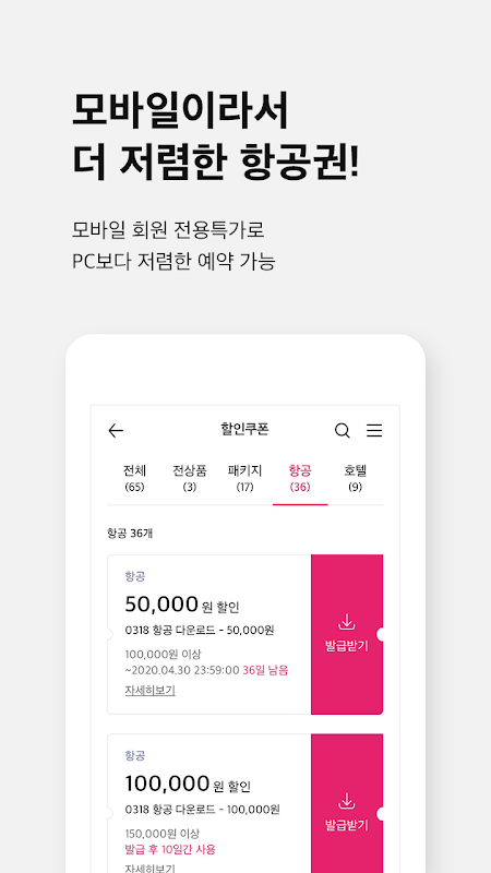 1. 하나투어항공 앱으로 구매시 할인 쿠폰 즉시 제공!