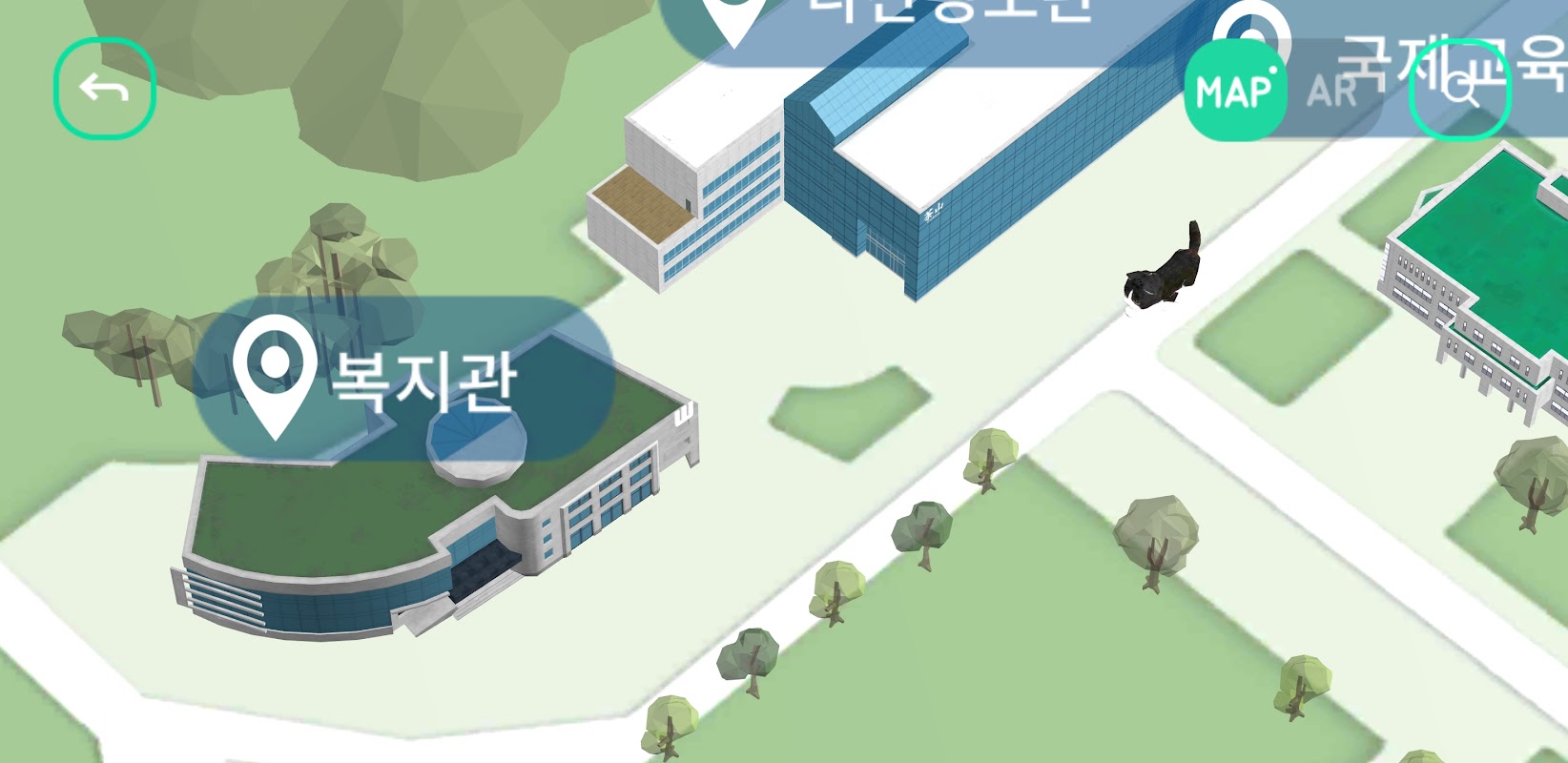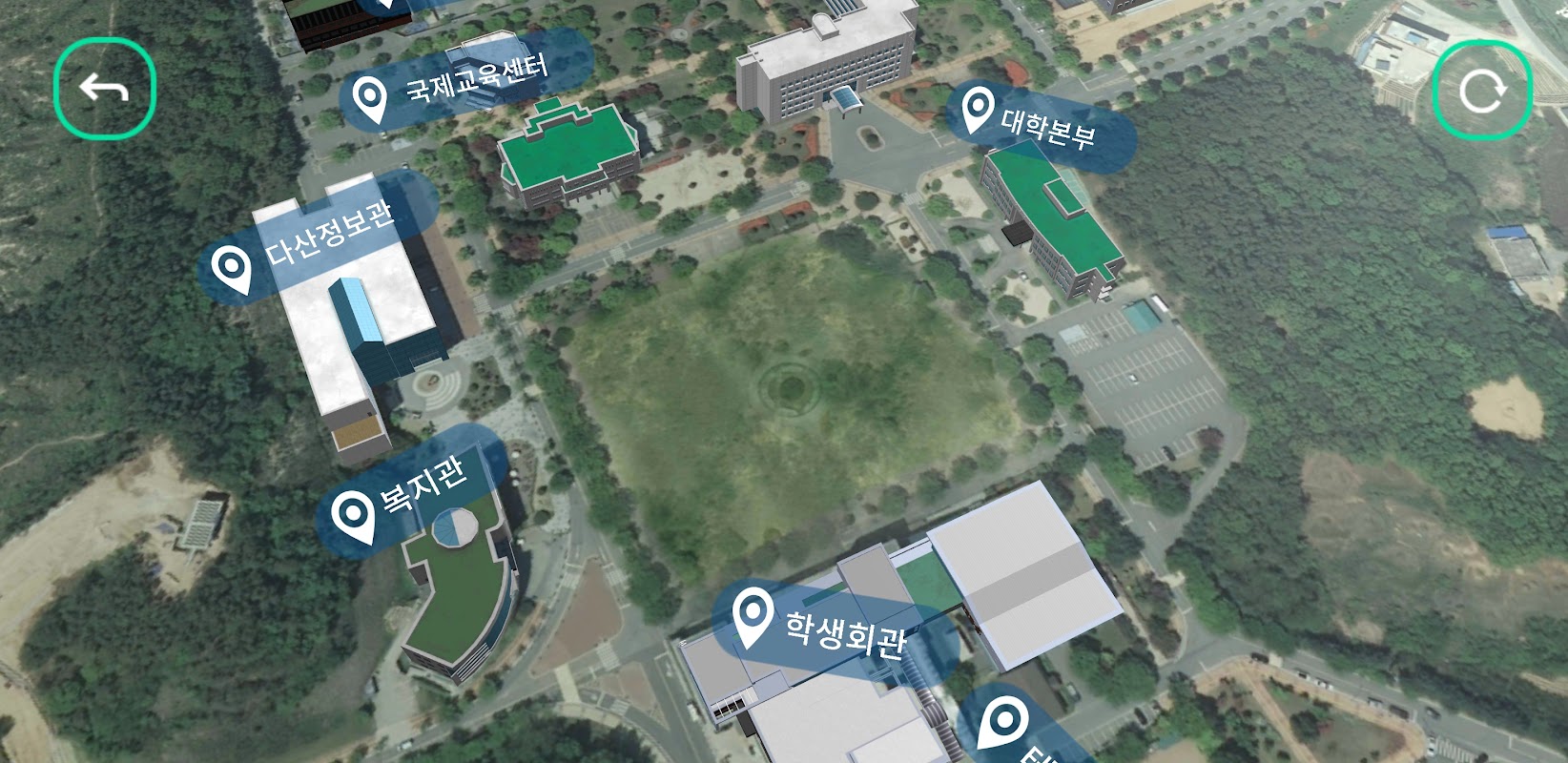 한국기술교육대학교 AR길찾기 및 3D 맵 보기 기능을 지원합니다.