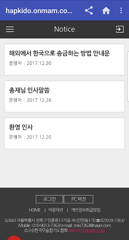 Esta aplicación es la aplicación en conjunto con "sitio web Martial Arts Association Corea Hapkido.
