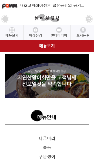 자연산활어회 전문점 해미원 횟집입니다.